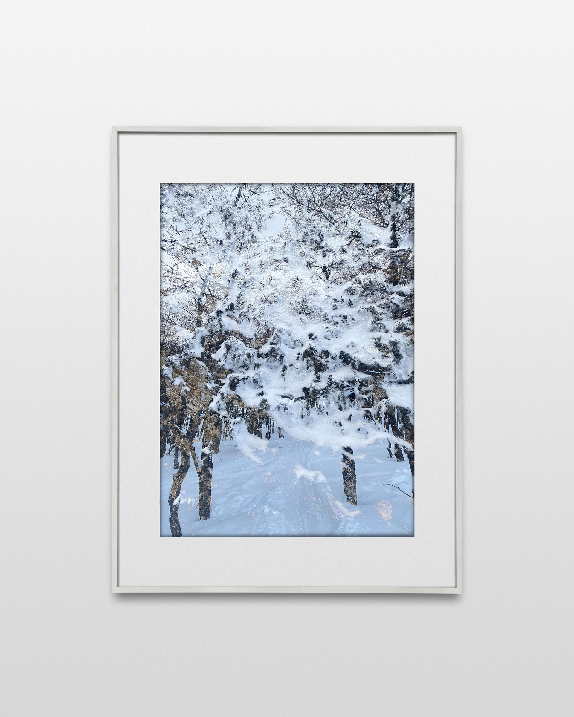 The layered landscape becomes an impossible territory: a place not remembered but invented. A space where the outside turns inward, where nature appears as an echo of what is longed for but out of reach. The work becomes a dialogue between desire and isolation, between presence and absence, between memory and construction.